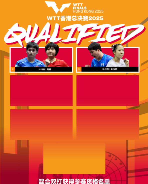 北京时间8月26日,WTT官方宣布了2025年香港总决赛入围的首批名单,女单国乒3人,男单国乒2人,混双林诗栋/蒯曼。